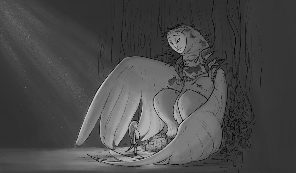 Se acercó en silencio hasta que el roce de sus plumas con las de ella empezó a ser algo a lo que aferrarse. Luego se agachó y se acurrucó bajo su ala con un sonido agudo que lo ruborizó un poco. Cerró los ojos y permaneció allí inmóvil hasta que el calor que lo envolvía se convirtió en fría e inexpresiva madera, hasta que solo fue un pájaro como cualquier otro escondido en un bosque sin bruja.